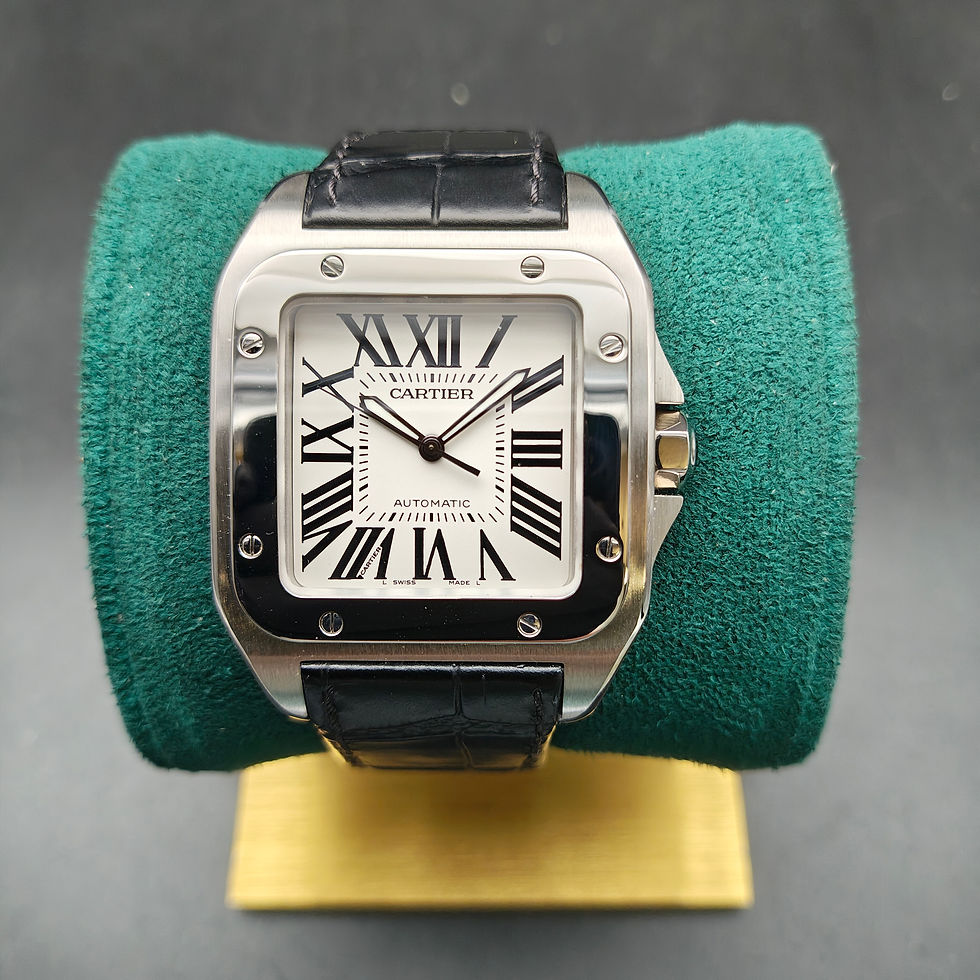 CARTIER SANTOS 100 Ref.2878 FULL SET 2010 BLACK LEATHER STRAP